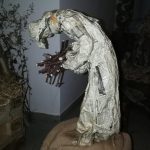 Jesu Geburt einmal anders. Altes Zeitungspapier, Mensch und Tier aus Draht, keine ausgestalteten Gesichtszüge, karg, einfach unbemalt, kein Landschaftspanorama aber mit einer deutlichen Botschaft des Weihnachtsgeschehens für uns heute. Der Künstlerpfarrer Sieger Köder schuf mit einigen Frauen 2004 diese ganz andere Krippe.