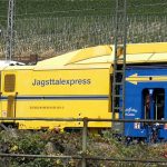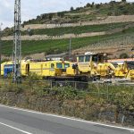 Etwas ganz besonderes ist es allerdings im Bahnhof von Rüdesheim am Rhein den Jagsttalexpress zu entdecken. Dabei handelt es sich um eine modernste Stopf- und Planiermaschinen aus dem Gleisgerätepark von LEONHARD WEISS. Diese Maschinen sorgen dafür, dass sich die Gleise geometrisch in der richtigen Lage befinden.