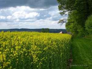 Weil es so trocken war gab es tolle Sonnenuntergänge über dem Jagsttal und auch sonst brachte der Mai Farbe ins Spiel. Viel Gelb auf den Wiesen und den Äckern.
